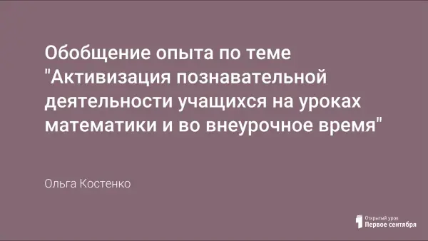 В работе показано развитие способностей учащихся мыслить свободно, без страха, творчески. Работать над активизацией познавательной деятельности – это значит формировать положительное отношение школьников к учебной деятельности, развивать их стремление к глубокому познанию изучаемых предметов.