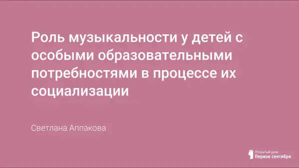 Статья об особенностях развития музыкальности у детей с особыми образовательными потребностями и о роли ее в процессе их социализации. Статья содержит информацию о различии понятий "музыкальные способности" и "музыкальность", о различиях и сходстве организации процесса музыкального воспитания в ДОУ общеразвивающего типа и в работе с детьми, имеющими отклонения в развитии; о роли развития музыкальности в процессе реабилитации и социализации детей с ОВЗ.