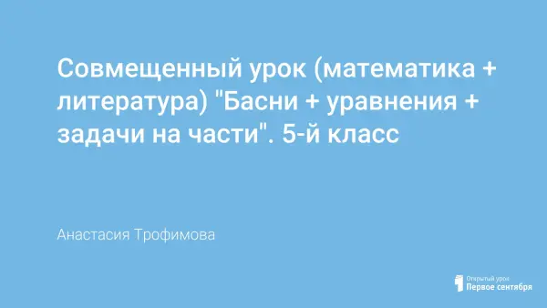 Представляю вариант совмещения уроков математики и литературы в 5-м классе по программе «Школа 2100» по темам «Басни» и «Задачи на части». В распечатках указываются номера страниц учебника математики С.А. Козлова, А.Г. Рубин, но и педагогам, работающим по другим программам, данный материал может служить отправной точкой для построения собственных разработок.