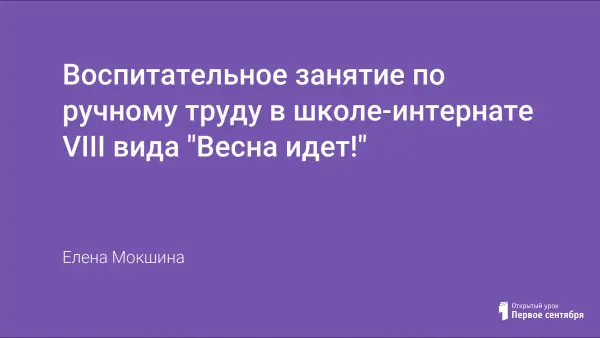 Воспитательное занятие направлено на закрепление полученных знаний о весне, весенних признаках на уроках, воспитательных мероприятиях, других видах деятельности, в результате личного опыта и др. Это второе занятие из цикла занятий о весне по ручному труду. Занятие призвано научить детей оформлять рамочки при помощи аппликации из бумаги.