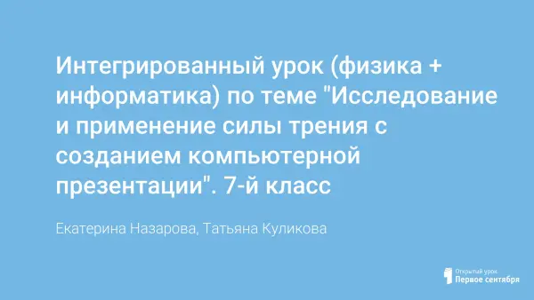 Интегрированный урок (физика + информатика) по теме "Исследование и применение силы трения с созданием компьютерной презентации". 7-й класс