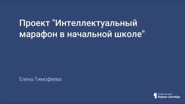 Проект "Интеллектуальный марафон в начальной школе" был задуман как долгосрочное мероприятие в целях осуществления внеклассной работы по предметам, для расширения образовательного пространства, активизации компетентностей в различных областях знаний у учащихся с нарушениями зрения.
