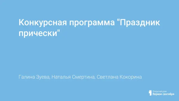 На мероприятии дети погружаются в увлекательный мир причёсок. Материал праздника содержит конкурсный сценарий, участие в котором принимают дети-конкурсанты, исполняющие роль парикмахеров, и работу с залом. Конкурсы, представленные в сценарии, дают детям возможность проявить творческую активность, развить находчивость при выполнении причёсок, а работа с залом - проявить смекалку в области парикмахерского мастерства.