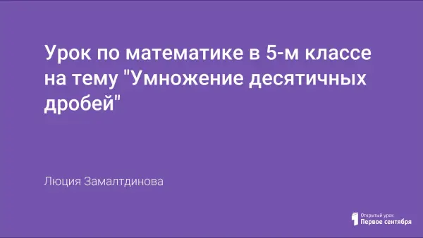 Данную работу можно использовать на уроке по математике в 5-м классе. Страница "Урок" применяется в качестве разработки к уроку по теме "Умножение десятичных дробей".