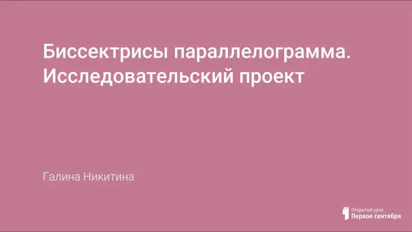 Урок позволяет учащимся закрепить знания о параллелограмме, узнать о его биссектрисе, вспомнить некоторые ранее изученные теоремы.