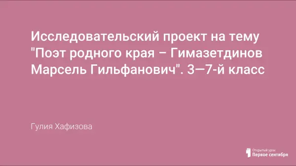 Проект посвящен Году историко-культурного наследия Республики Татарстан. Учащимися был подготовлен исследовательский проект "Поэты родного края". Ученики знакомятся с родным краем, со знаменитыми земляками, сделавшими существенный вклад в развитие республики и ее процветание. Повышают интерес к краеведческой работе посредством применения информационно-коммуникационных технологий.