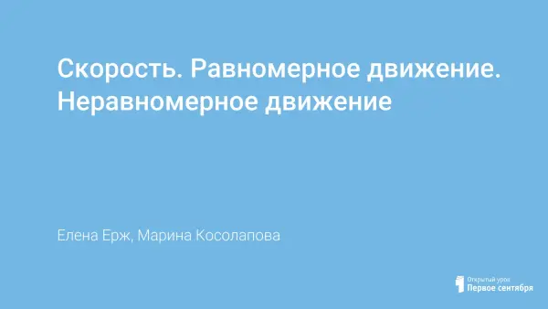 На уроке учащиеся познакомятся с одной из важнейших характеристик механического движения – скоростью, а также с понятиями равномерного и неравномерного движения. В ходе урока вводится единица измерения скорости, объясняется, какие величины являются векторными, а какие скалярными.
