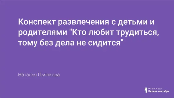 Конспект развлечения с детьми и родителями "Кто любит трудиться, тому без дела не сидится"
