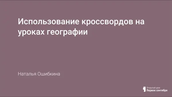 Кроссворды дополняют традиционные формы обучения. Использование кроссвордов по географии повышает эффективность уроков. В данной работе представлены авторские кроссворды по темам: Южная Америка (7-й кл.), географическое положение Австралии (7-й кл.), план местности (6-й кл.), рельеф Африки (7-й кл.), географическое положение Евразии (7-й кл.), внутренние воды Северной Америки (7-й кл.), реки и озера Африки (7-й кл.).