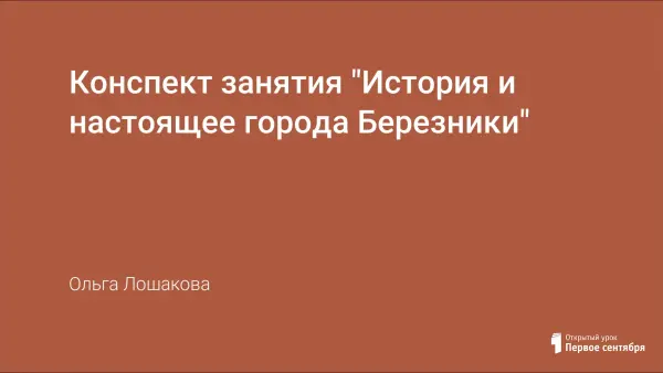 Конспект поможет сформировать у детей первоначальные представления о родном городе – Березники. Интересный фактический материал, изложенный доступно и занимательно, будет способствовать расширению кругозора детей, развитию активности в познании окружающего мира, что очень важно для воспитания патриотических чувств.
