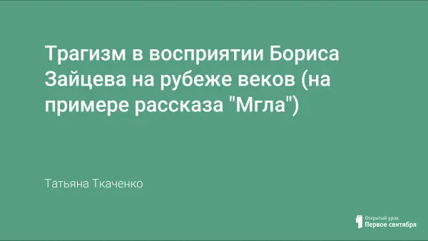 Предложенный урок выявляет особенности литературы начала XX века и знакомит учеников 10-го класса с творчеством Бориса Зайцева. На уроке ученики анализируют рассказ "Мгла", стараются понять, в чём трагизм восприятия Б.Зайцева на рубеже двух веков.
