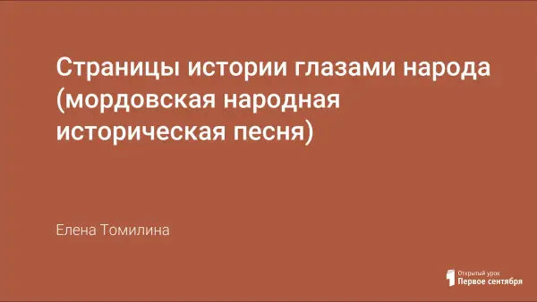 Урок помогает продолжить разговор о мордовской народной песне, познакомить с жанровыми особенностями мордовской исторической народной песни, её сюжетами, героями; рассмотреть и увидеть вновь известные факты истории через призму народной песни, народной мудрости.