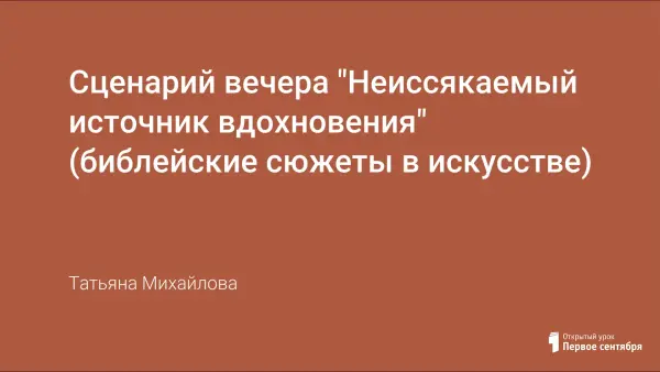 Сценарий внеклассного мероприятия «Неиссякаемый источник вдохновения» был разработан для декады искусства. Цель: формировать интерес старшеклассников к мировой художественной культуре, вырабатывать потребность общения с произведениями искусства, учить находить в них духовно-ценностные ориентиры.