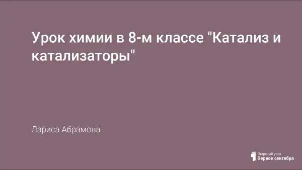 Данный урок направлен на закрепление знаний о факторах, влияющих на скорость химических реакций, и формирование понятия «катализ» и «катализаторы». Знакомство с этими понятиями осуществляется на основе использования проблемного, экспериментально-исследовательского и дифференцированного методов обучения.