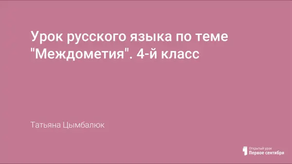 Цели урока: познакомить с новой частью речи – междометием и ее особенностями; показать роль междометий в речи; формировать умение находить междометия в текстах, определять роль междометий и конструировать предложения, включая в них междометия; закрепить умение отличать самостоятельные части речи от служебных; закрепить умение производить морфологический разбор слов.