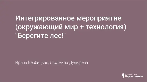 Интегрированное мероприятие (окружающий мир + технология) "Берегите лес!"