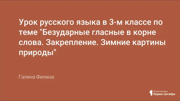 На уроке закрепляются знания учащихся о безударных гласных в корне слова, умения проводить морфемный анализ слова, проводить синтаксический разбор предложения, умения работать с текстом. Продолжается работа по формированию творческой активности детей.