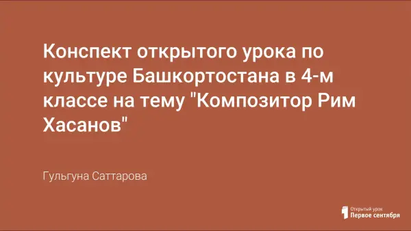Конспект открытого урока по культуре Башкортостана в 4-м классе на тему "Композитор Рим Хасанов"