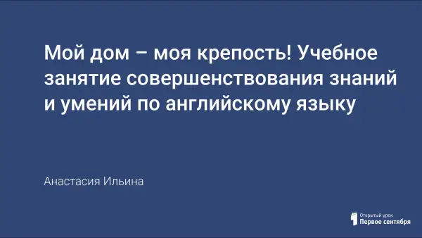 Мой дом – моя крепость! Учебное занятие совершенствования знаний и умений по английскому языку