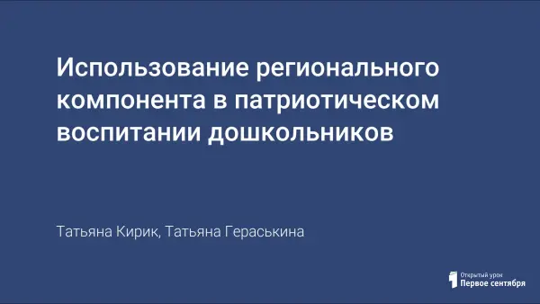 Использование регионального компонента в патриотическом воспитании дошкольников