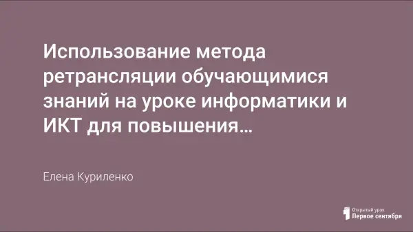 Современное общество стремительно развивается, что вызывает необходимость модернизации образования, которая направлена на формирование личности учащегося, способного эффективно работать с информацией и организовывать продуктивное взаимодействие с другими людьми. Для этого необходимо формировать у учащихся УУД и развивать «мягкие» навыки. В статье рассматривается метод ретрансляции обучающимися знаний, способный быстро повысить мотивацию к изучению информатики, а также сформировать важные «мягкие» навыки.