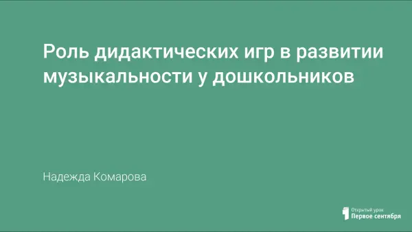 Важное место в работе каждого педагога-музыканта, работающего с дошкольниками, занимает дидактическая игра. Она требует от детей самостоятельных действий в восприятии и различении свойств музыкальных звуков, помогает обобщать их знания, учит применять знания в новой обстановке, углубляет познавательные интересы.