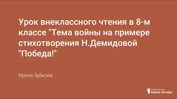 Урок посвящён формированию у учащихся патриотических чувств, воспитанию уважительного отношения к героям войны на примере стихотворения «Победа!».