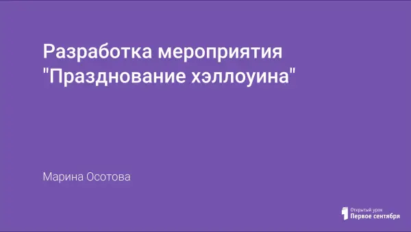 Данная работа представляет собой разработку открытого внеклассного мероприятия, посвященного празднованию британского праздника "Хэллоуин". Цель урока – помочь детям заинтересоваться культурой, искусством, литературой страны изучаемого языка. Мероприятие может быть проведено с детьми 5–7-х классов.
