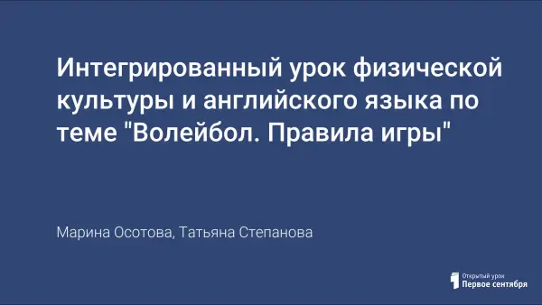 Урок проводится на английском языке, знакомит учащихся с правилами волейбола; развивает физические качества, необходимые волейболистам; знакомит с основными техническими приемами волейбола.