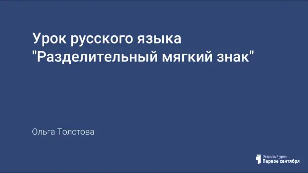 Цель урока: формировать представление об употреблении разделительного мягкого знака и правописании слов с разделительным мягким знаком; развивать умение сравнивать; развивать память, логическое мышление; воспитывать желание учиться и делать открытия. Урок по технологии проблемного диалога.