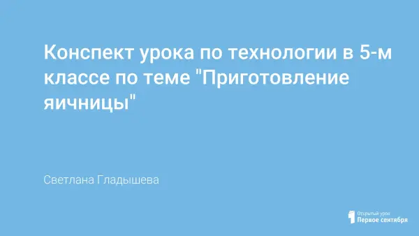 Конспект составлен в соответствии с программой образовательной области «Технология» для учащихся 5-го класса. Урок разработан с использованием методики частного случая; знакомит учащихся с питательными свойствами яиц, формирует навыки по определению доброкачественности яиц и приготовлению блюд из яиц.