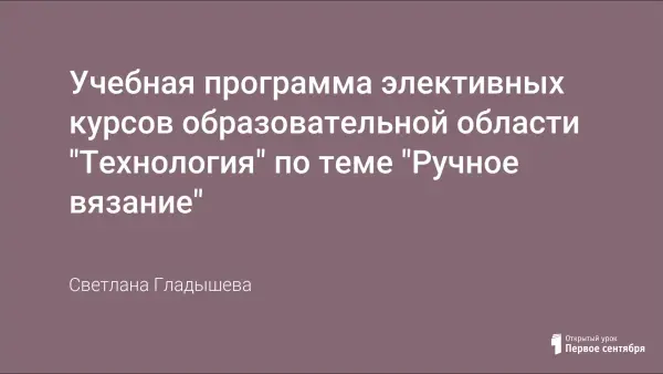 В программе приведены рекомендации по организации занятий. Большое внимание уделено приемам вязания на спицах, показаны образцы вязок, технология изготовления различных вязаных изделий. Программа рассчитана на учителей образовательной области «Технология», педагогов дополнительного образования и учащихся 9-го класса.