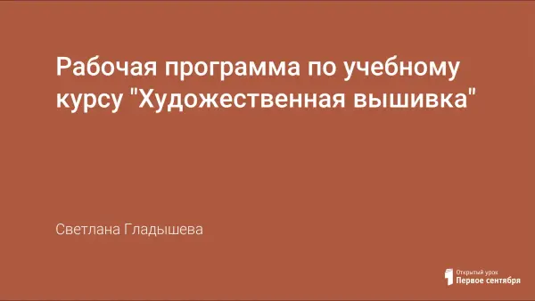 В программе отражен технологический компонент общего среднего (полного) образования. Ее реализация предполагает личностно ориентированный подход к учащимся: мониторинг и развитие их возможностей, интересов, воспитание творческой самостоятельности при выполнении проектных и исследовательских работ. Цель программы: обеспечить условия, способствующие формированию творческой самореализации личности ребенка средствами декоративно-прикладного искусства.