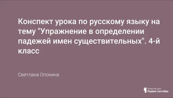 Разработка открытого урока в 4-м классе способствует формированию умения определять падежи имён существительных, развивает орфографическую зоркость, мышление, устную и письменную речь. Предложенные задания помогают усвоить тему, способствуют активной работе учащихся.
