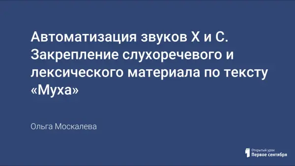 Цели урока: автоматизировать звуки [С] и [Х] в слогах, словах и фразах на материале текста «Муха»; формировать навыки слоговой структуры слов; определять положение логического (смыслового) ударения в предложении; закрепить слухоречевой материал по тексту «Муха».