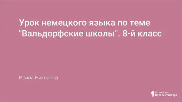 Урок сообщения новых знаний в 8-м классе по теме «Вальдорфская школа» в плане изучения системы школьного образования в Германии. В ходе данного урока обучающиеся узнают, почему этот тип школы называют школой без стресса.