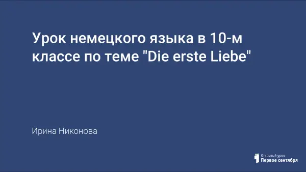 На уроке немецкого языка в 10-м классе по теме «Первая любовь» обучающиеся развивают навыки говорения, аудирования, навыки работы с текстом и совершенствуют грамматические навыки и умения по теме «Порядок слов в простом предложении и придаточном дополнительном предложении».