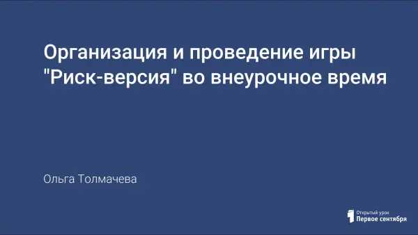 В современных условиях огромное значение приобретает вопрос развития игровой формы обучения как одного из видов учения. Дидактическая игра "Риск-версия" является полифункциональным средством организации процесса обучения химии в средней школе, может быть широко использована не только во внеклассных мероприятиях, но и на уроках.