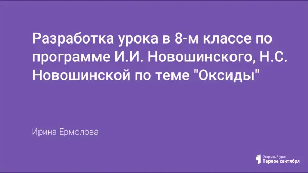 На уроке используется проблемный подход при изучении нового материала, учащимся предлагается самостоятельно найти, отобрать, обобщить необходимые сведения об оксидах. Создаются условия для развития интеллектуальных умений (сравнение, анализ, установление причинно-следственных связей).