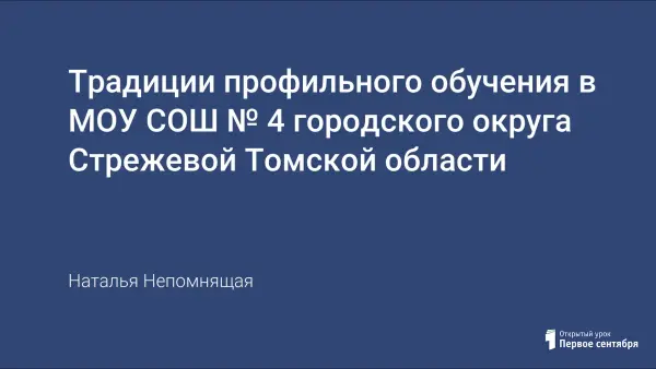 Система профильного обучения сложилась в МОУ СОШ № 4 более 10 лет назад. За годы работы созданы нормативно-правовые, методические, кадровые, информационные и материальные ресурсы профильных классов. Предпрофильная подготовка проводится в девятых классах в рамках городской сети, позволяя использовать ресурсы учреждений города, создавая профильные классы с учётом учебных достижений, портфолио старшеклассников.