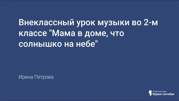 Урок проводится в предпраздничные дни 8 Марта или ко Дню матери. В первую очередь он несет воспитательные функции, такими нежными и проникновенными песнями о самом близком человеке мы стараемся привить детям доброту, любовь, взаимопонимание, которые так необходимы в каждой семье. Ученики слушают и обсуждают музыку, ее темп, звучание, ритм, характер музыки, знакомятся с творчеством композиторов.