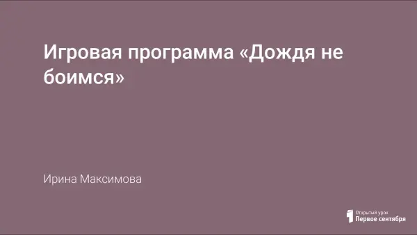 Представлен сценарий игровой программы «Дождя не боимся». Данное образовательное событие можно провести в летнем оздоровительном лагере. Цель: Создать детям атмосферу праздника, радости и хорошего настроения.