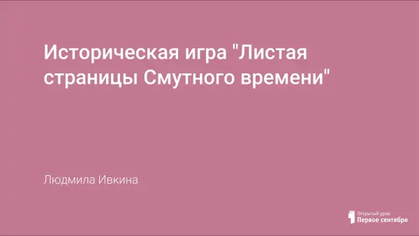 Игра проходит в рамках "Недели Единства" перед государственным праздником 4 ноября. Участвуют обучающиеся 8–11-х классов. Каждый этап проходит одним днем, а итоги подводятся на заключительной линейке "Недели". Главная цель – смотивировать учащихся на более глубокое изучение исторического материала и показать историческую подоплеку государственных праздников. Игра используется для ретроспективного повторения исторической эпохи при подготовке к ЕГЭ.