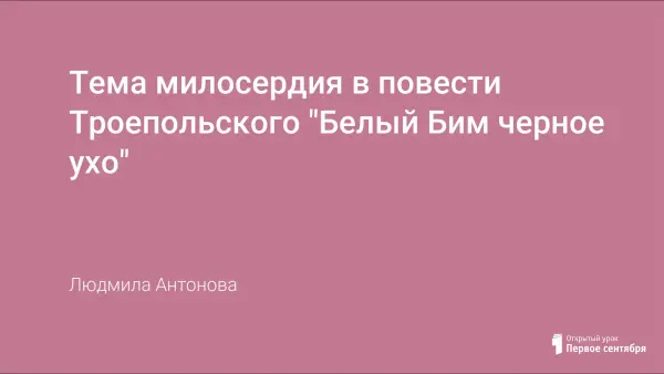 В наше время милосердие стало дефицитом. На уроках мы должны говорить о добром отношении к меньшим своим братьям, поэтому автор считает, что необходимо чтение такого произведения, как повесть Троепольского «Белый Бим Чёрное ухо». Урок проведен в 7-м классе.