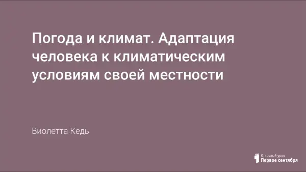 Разработка урока отражает вопросы изучения климата Краснодарского края и адаптацию жителей края к климатическим особенностям своей местности. Урок проводится в диалоговой форме с элементами групповой деятельности учащихся и с использованием ИКТ - мультимедийный учебник и презентация. При проведении урока должен быть мультимедийный учебник для «Начального курса физической географии – 6-й класс».