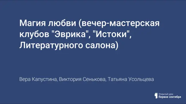 Магия любви (вечер-мастерская клубов "Эврика", "Истоки", Литературного салона)