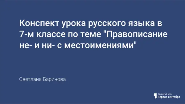 Урок посвящен закреплению орфографического навыка написания не- и ни- с местоимениями. Показана связь русского языка с ОБЖ, физической культурой, химией, географией.