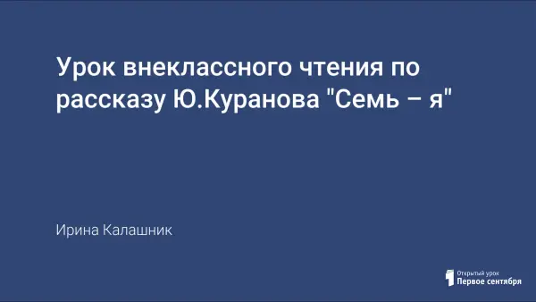 В ходе урока осуществляется знакомство с жизнью и творчеством калининградского писателя Юрия Куранова, воспитание в детях чувства любви и уважения к близким людям, внимательного отношения к окружающему миру, формирование навыков составления характеристик героев, умения работать с текстом, делать выводы и обобщения.