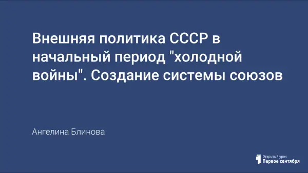 Урок является первым в изучении новой главы темы «От сталинизма - к «оттепели»: Советский союз в 1945–1964 гг.». Занятие формирует у учащихся конкретные представления о понятии «холодная война», ее причинах и последствиях; об образовавшихся в процессе противостояния военно-политических союзах.
