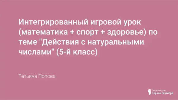 Данный урок математики проводится в 5-м классе при изучении темы "Действия с натуральными числами". По дидактической цели – это урок обобщающего повторения, включающий элементы интеграции отдельных дифференцированных частей в целое: "Математика, спорт и здоровье".